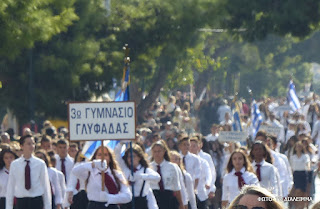 Πολυπληθής αντιπροσωπεία μαθητών του 3ου Γυμνασίου Γλυφάδας με επικεφαλής την καθηγήτρια Χρύσα Γεωργακάκη, συμμετείχε στην παρέλαση της επετείου της 28ης Οκτωβρίου 1940, που έγινε στην Άνω Γλυφάδα, στην λεωφόρο Γεννηματά. Το 3ο Γυμνάσιο, δια της καθηγήτριας Χρύσας Γεωργακάκη, αντιπροσώπευσε και τα γυμνάσια της πόλης καταθέτοντας στεφάνι στο Ηρώο!
