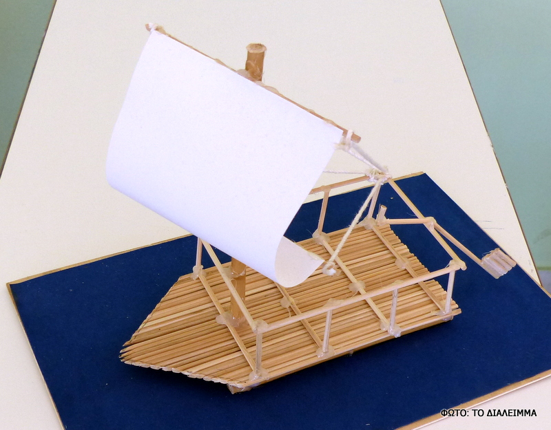 Αυτή την κατεστραμμένη σχεδία θέλησαν να κατασκευάσουν από την αρχή τα παιδιά που φοιτούσαν στο τμήμα Α4 κατά τη σχολική χρονιά 2016-17 ώστε να καταφέρουν να συνοδέψουν τον ήρωα στο δύσκολο ταξίδι του και να γνωρίσουν κι αυτοί από κοντά το νησί της Καλυψώς και όλη την Ιθάκη. Απαραίτητα υλικά της κατασκευής αυτής ήταν καλαμάκια,κόλλα ή κολλητική ταινία και ένα ύφασμα για πανί. Υπεύθυνη της εργασίας αυτής  ήταν η φιλόλογος κυρία Αλειφέρη.